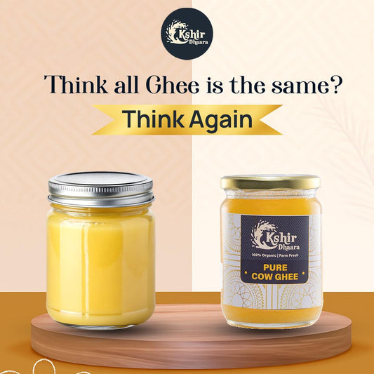 Shop Now"Hand-churned from curd using the ancient Bilona method, made exclusively from the milk of grass-fed Desi cows. Packed with Ayurvedic goodness, it's not just ghee - it's liquid gold for your health, immunity, and soul"